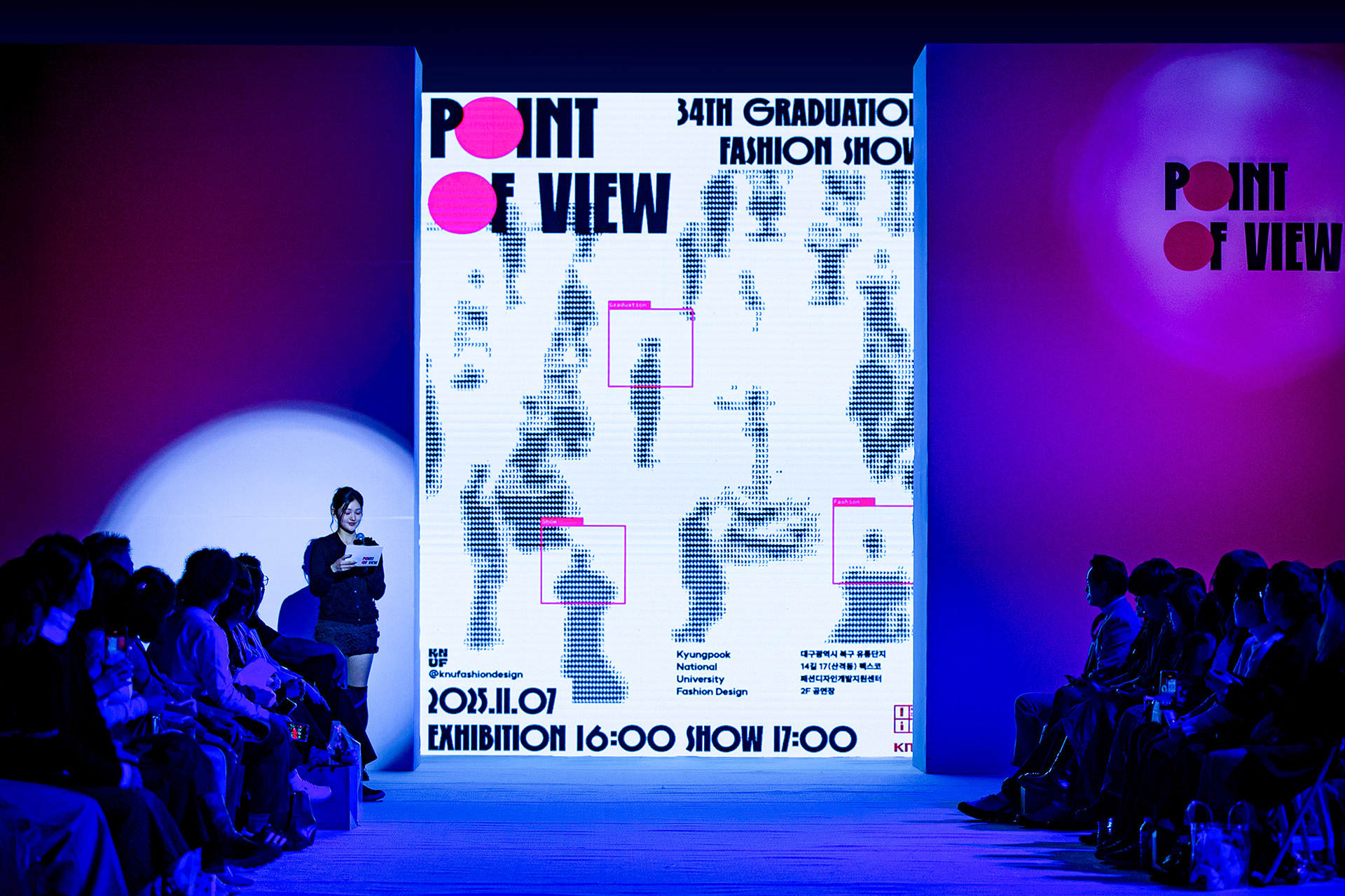 이번 졸업패션쇼는 ‘POV(Point of View)’를 주제로, 31인의 학생 디자이너가 각자의 시선으로 포착한 세계를 패션으로 풀어냅니다. 하나의 무대 위에 펼쳐지는 31개의 관점은, 우리가 무엇을 보고 어떻게 느끼는지를 다시 묻는 시간입니다.