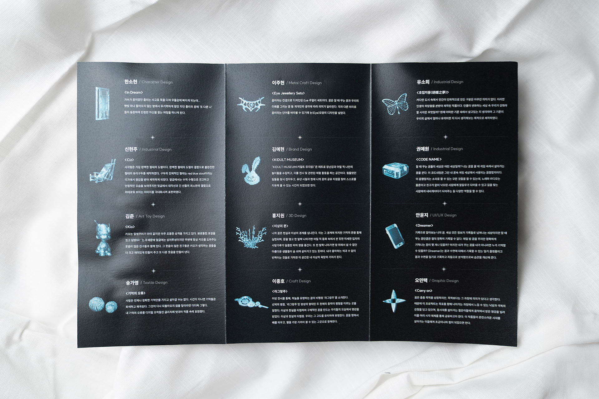 전시 기획 과정을 통해 서로 다른 디자인 전공 간의 연결 가능성을 경험했고, 궁극적으로는 시각예술 분야의 통합을 목표로 두게 되었습니다.