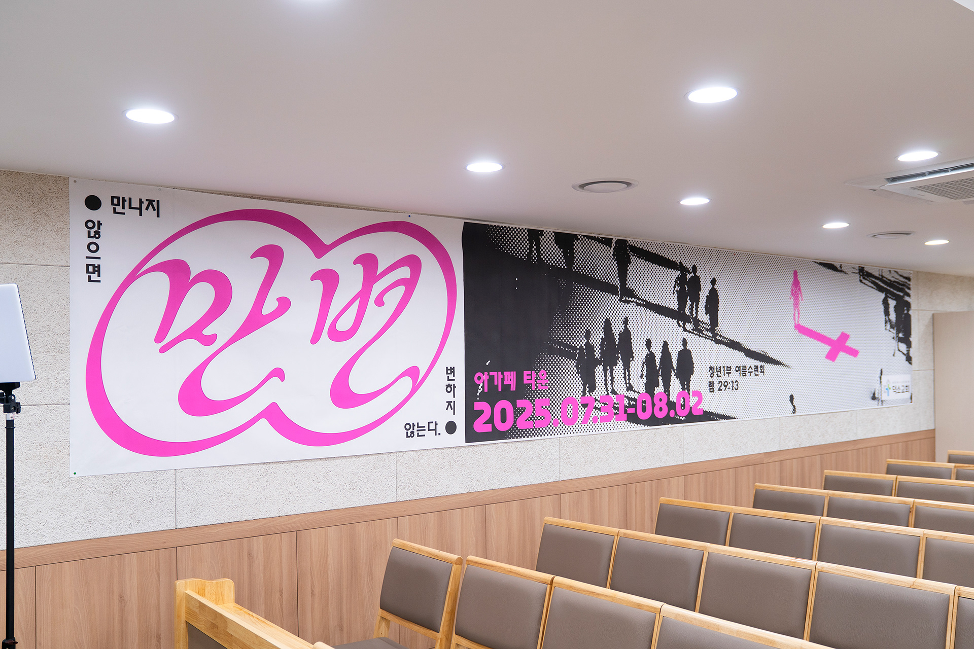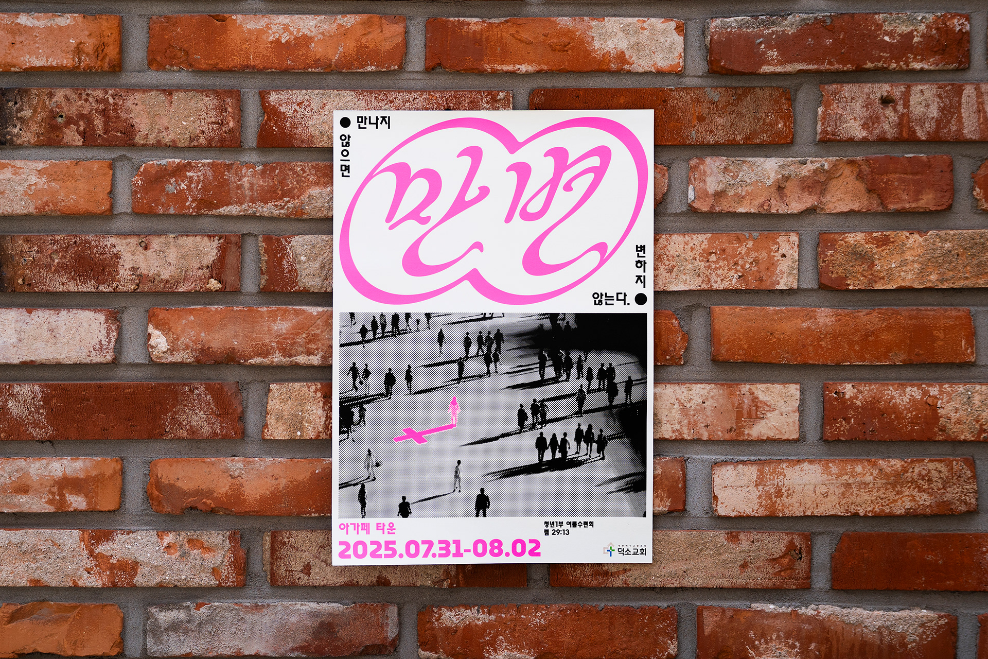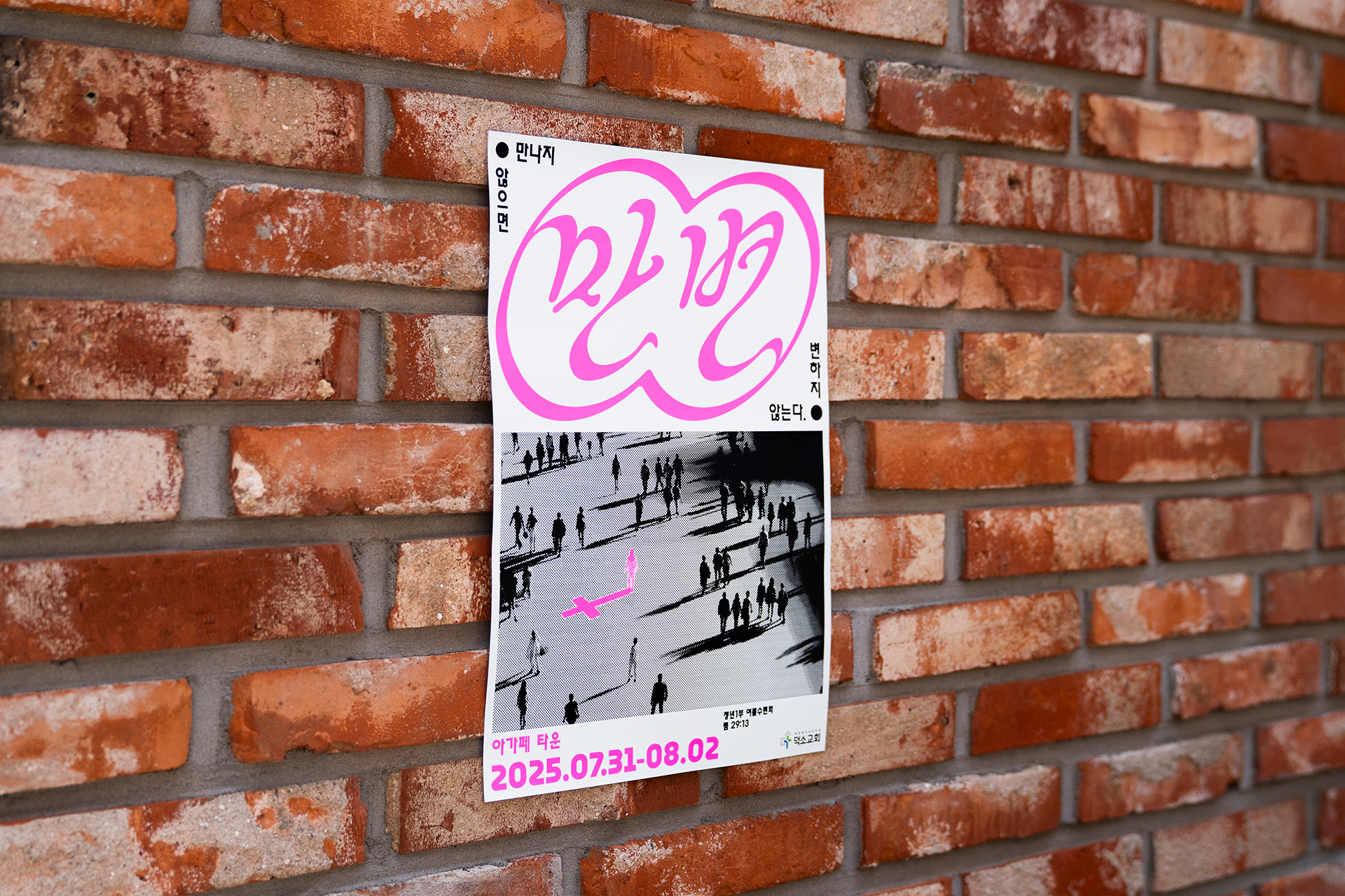 포스터, 현수막, 티셔츠 등 다양한 매체로 확장된 디자인은 행사 전반의 일관된 인상을 형성하였으며, 각 매체의 특성과 환경에 맞춰 조정하여 ‘만남’의 메시지가 자연스럽게 전달되도록 하였습니다.