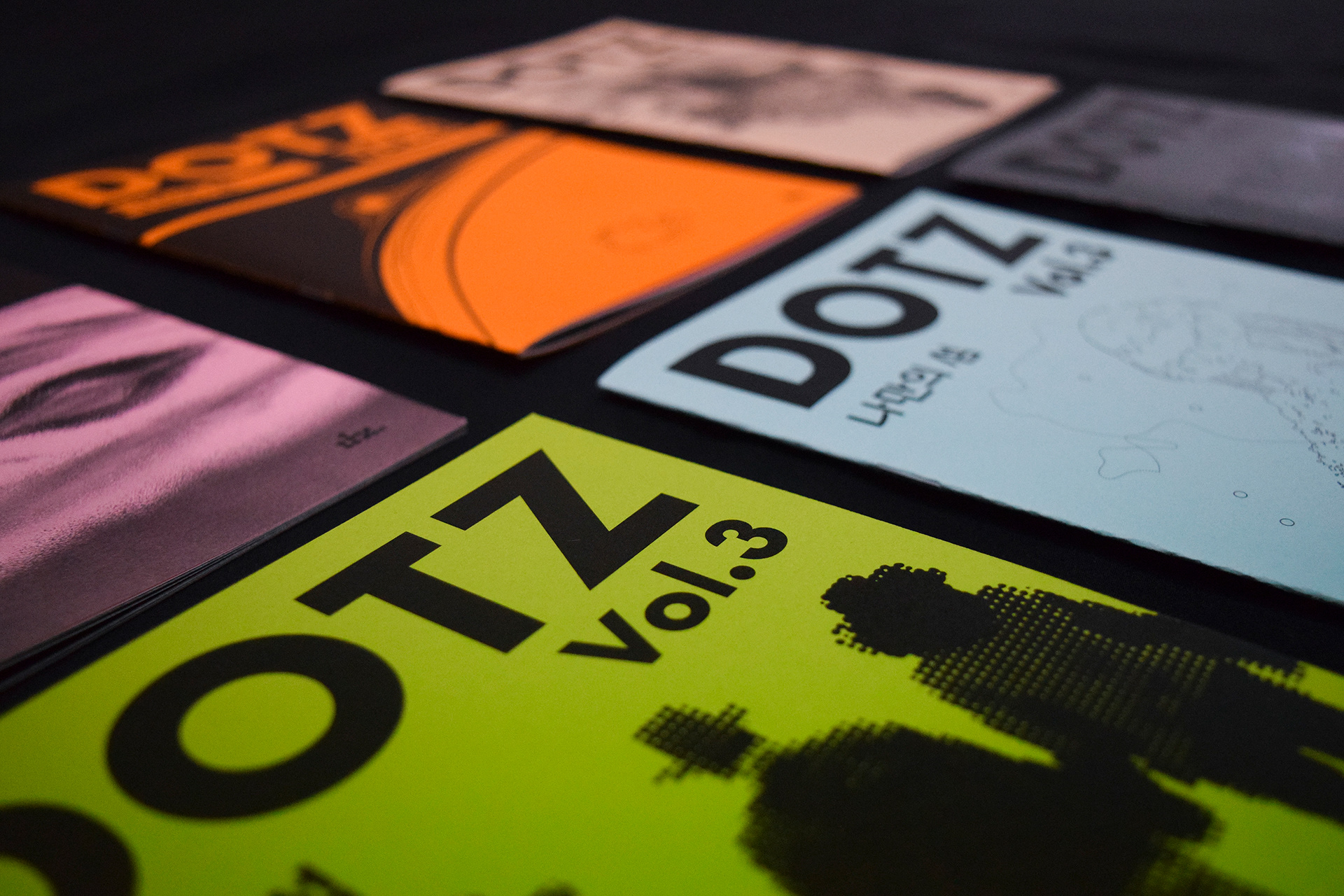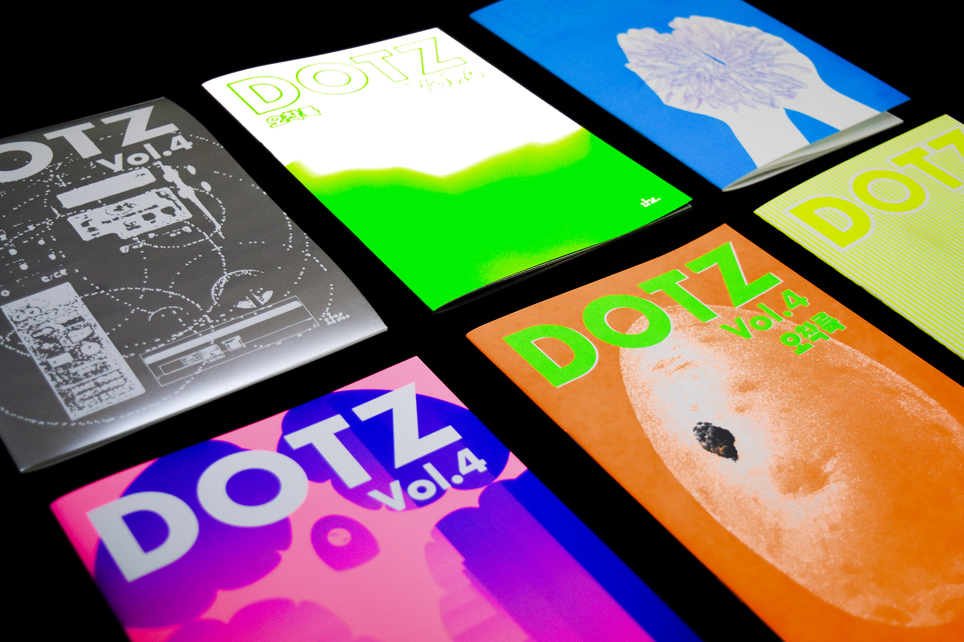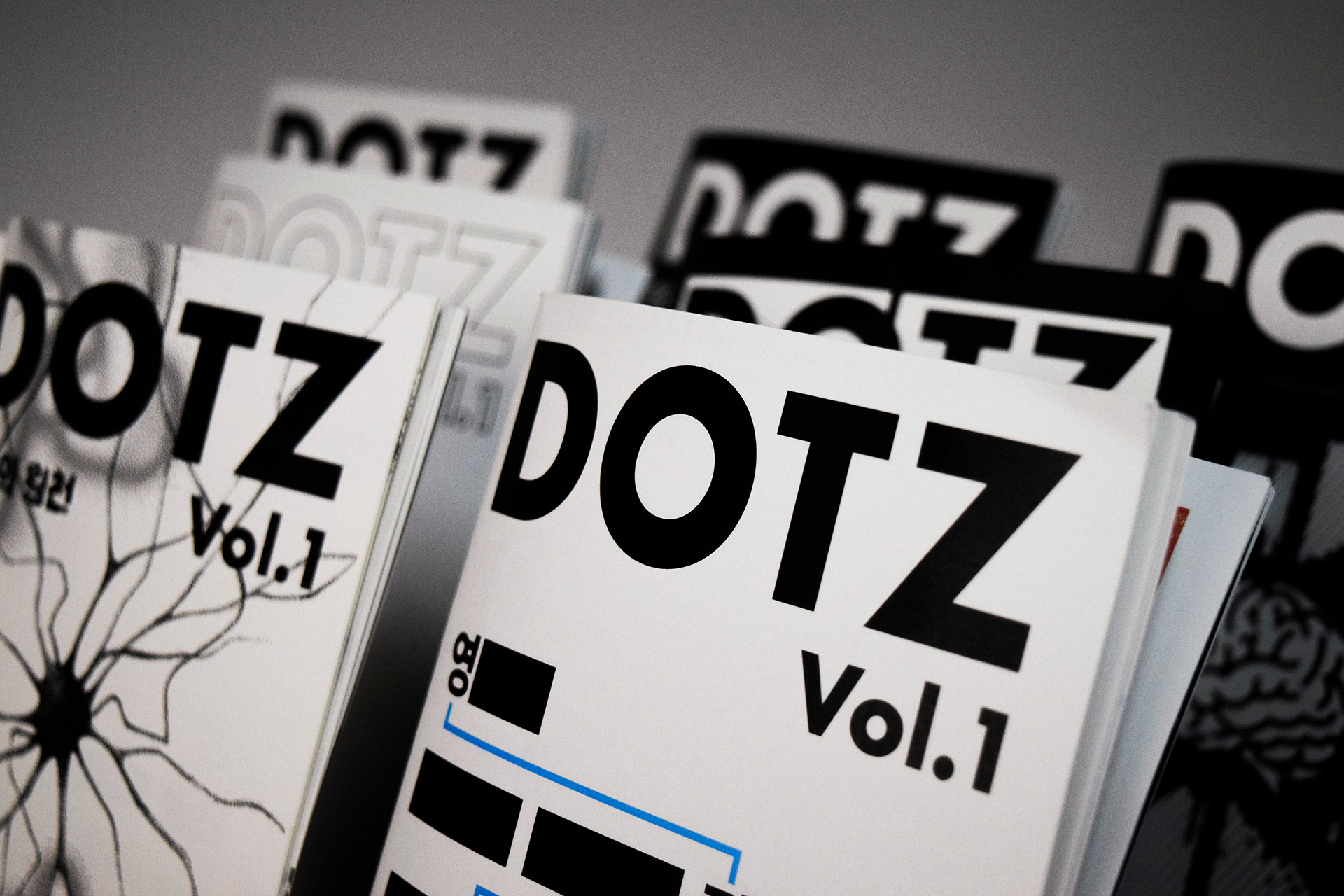 현재까지《DOTZ》는 Vol.(볼륨) 4까지 제작되었으며, “영감의 원천”, “마음의 고향”, “나만의 섬1, 2”를 주제로 총 25부를 제작 및 전시했습니다. 아트북 형식의 실험적인 그래픽을 다룬 간행물 《DOTZ》는 그 달의 주제에 따라 작가가 생각하는 시각적 해석 방식을 살펴볼 수 있습니다.